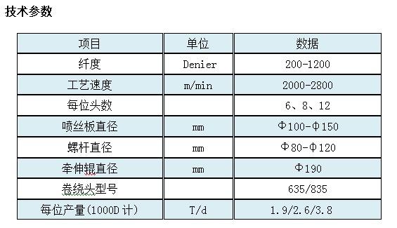1.螺桿為加長型,變頻及壓力調(diào)節(jié)儀器為進口品牌 2.采用了新型高效節(jié)能型紡絲箱體,比普通紡絲箱節(jié)能。 3.采用上裝式組件,方便紡絲工操作。 4.側(cè)吹風(fēng)系統(tǒng),風(fēng)速均勻穩(wěn)定,纖維條干好。 5.采用感應(yīng)或高頻加熱牽伸輥輥,降低能耗。 6.多種組合的多級牽伸和熱定型方式可滿足丙綸牽絲不同性能的要求。 7.采用全自動卷繞頭,切換成功率高,廢絲率低,成形良好。 8.溫控儀表、變頻器為進口品牌。